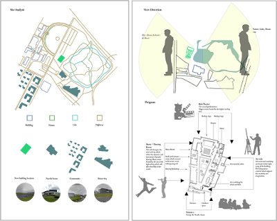 The building is going to be the additional building of the Nordic house so it will be close to the Nordic house. This site is located in Reyjavik, Iceland where is the nice weather and landscape. In front of the nordic house there is a lake which may give a good features to the building. On the right side of the building which is music and dancing room will be the art side so people will face to the lake and nice mountain. On the left and side is facing road and the building nearby