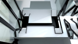 here the two faculty are separated having the center space as the shared facilities. The volume of the space is created by the horizontally stretched stairs.